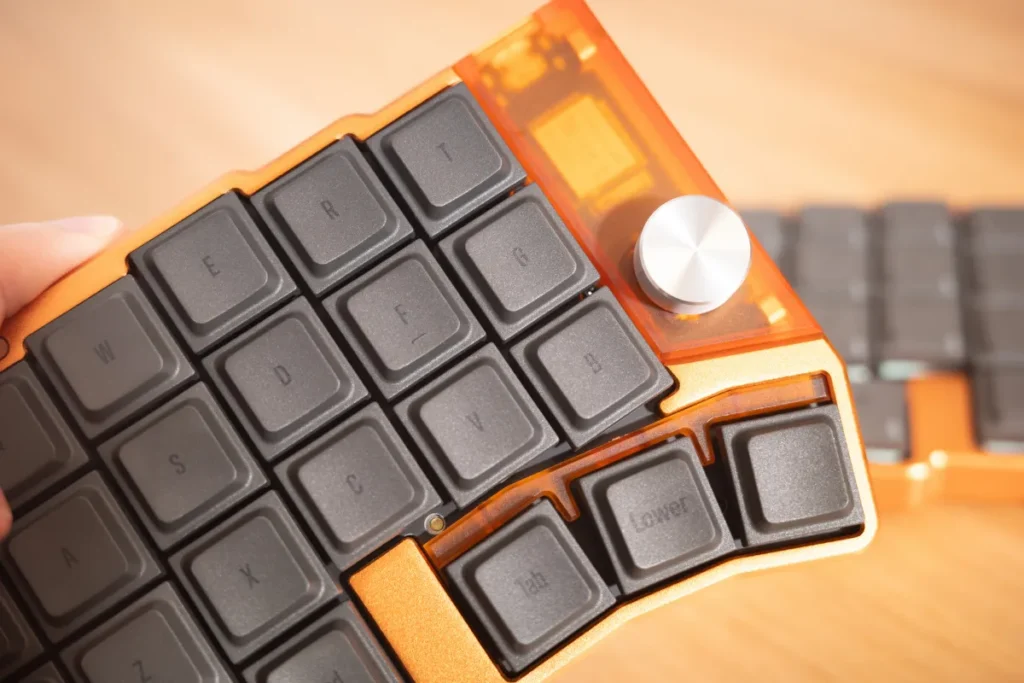 - 省スペースと機能性の両立: 分割キーボードとしてのコンパクトさを保ちながらも、親指周りのキー配置などが計算し尽くされており、「これ以上も以下もいらない」という絶妙なバランスを実現しています。