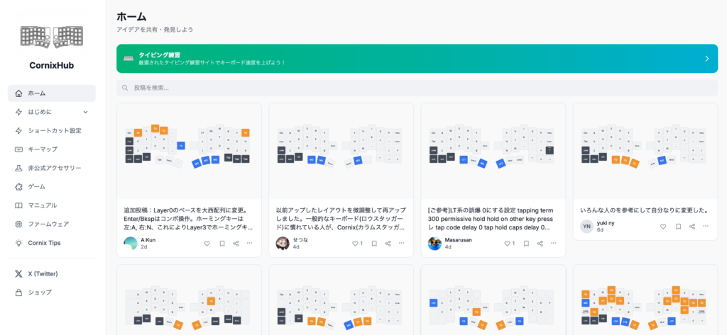 - カスタマイズのシェア: 公式の「Cornixhub」を使えば、世界中のユーザーが考案したキーマップやカスタマイズを参考にできます。「自分一人で悩まなくていい」というのは、分割キーボード初心者にとっても非常に心強いポイントです。